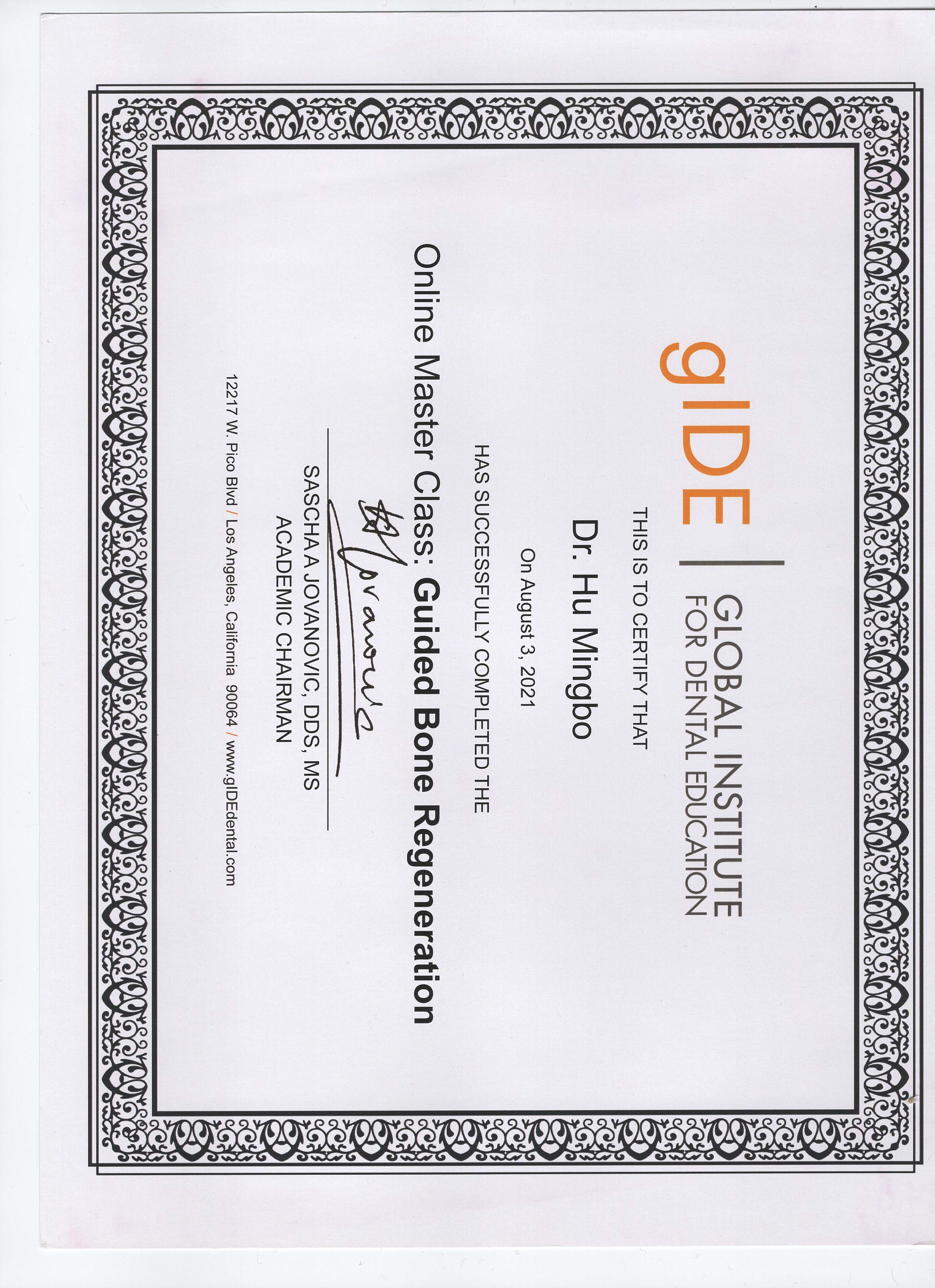 简介:本科毕业于吉林大学口腔医学专业,研究生就读遵义医科大学,取得口腔颌面外科硕士,后进修深造,取得德国颌面外科学院(MKG)种植硕士。曾就职三甲医院口腔医学中心,从事口腔行业15年,拥有丰富的口腔医学临床经验。多次受邀参加国内外口腔医学学术研讨交流会,获得众多荣誉与奖项,在国内专业学术期刊发表口腔领域论文数篇,承担科研课题共两项。多年来,胡院长一直深耕口腔种植领域,在专业与技术上不断进步、突破,为患者带来舒适的诊疗服务。运用数字化3D导板定位技术准确制定种植体的位置、方向及深度等三维位置,从而达到微创、快速的治疗效果。凭借其专业与严谨认真的工作态度、获得患者的一致好评与赞誉。